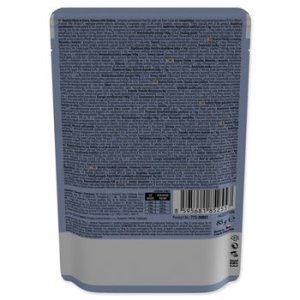 | Složení: | Maso a výrobky živočišného původu (91% ve filetkách*, z toho 10% kuřecí*), bílkovinné extrakty, vedlejší výrobky rostlinného původu (0,4% inulin), minerální látky, cukry. *Filetky obvykle tvoří 44% produktu. |