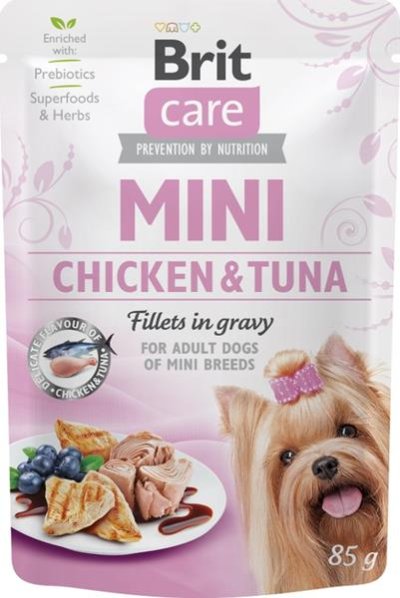 Jemné krájené filetky s kuřetem a tuňákem v omáčce. Toto krmivo pro malé psy je díky čerstvým proteinům lehce stravitelné a velmi chutné. Přírodní aditiva pro podporu imunity působí u malých pejsků jako prevence. Nízký glykemický index krmiva pomáhá předcházet vzniku obezity a přispívá k nižší zátěži trávicího traktu a ke stabilizaci hladiny krevního cukru. V kostce: