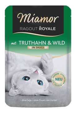 Jemné kousky v delikátní šťávě, gurmánský pokrm s krocaním masem a zvěřinou – zcela bez hovězího masa. Obohaceno o vitamíny.