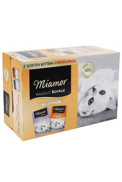 Kompletní krmivo pro koťata. Jemné kousky masa v rosolu. Dvě receptury v balení, každá po 6 ks.