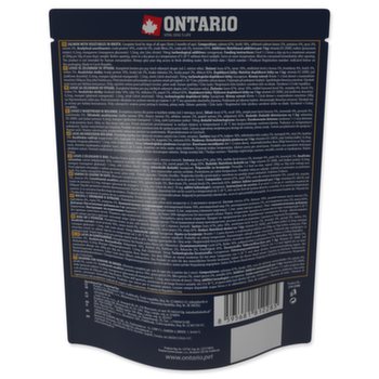 Losos 67%, vývar 18%, změkčené kosti z lososa 5%, brambory 4%, hrách 3%, mrkev 3%.