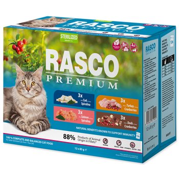 Hrubý protein 10%, hrubý tuk 3,5%, hrubá vláknina 0,4%, hrubý popel 2,5%, vlhkost 81%. Doplňkové látky: Nutriční doplňkové látky v 1 kg: vitamin D3 160 m.j., vitamin E 100 mg, zinek (síran zinečnatý monohydrát) 10 mg, mangan (oxid manganatý) 2 mg, měď (síran měďnatý pentahydrát) 1,2 mg, jód (jodičnan vápenatý bezvodý) 0,2 mg,, taurin 520 mg, biotin 100 µg.