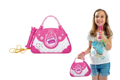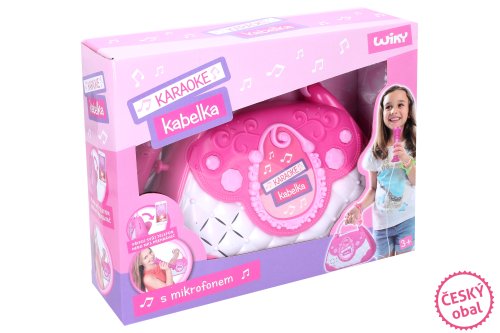 Karaoke kabelka. Světelné a zvukové efekty. Součástí mikrofon, vstup pro telefon a mp3 přehrávač, 2 tlačítka - efekt potlesku, vestavěné melodie. Přepínač ON/OFF. 3xAA baterie nejsou součástí.