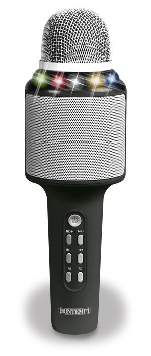 Karaoke bezdrátový mikrofon – funkce hlasového zapnutí/vypnutí karaoke -přehrávejte všechny své oblíbené skladby a VYPNĚTE původní hlas v hudbě. Nastavení hlasitosti mikrofonu, echo efekt, efekt měniče hlasu, můžete poslouchat hudbu ze smartphonu, tabletu, PC – a to bezdrátově. Nastavení hlasitosti přehrávané skladby. Tlačítka výběru předchozí/následující skladby. Zásuvka pro externí zdroj zvuku (smartphone, přehrávač MP3 atd.) Světelné efekty. Kabel na nabíjení je součástí balení.