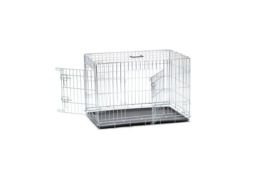 Stříbrná drátěná klec vhodná pro malá zvířata. Nabízí bezpečné útočiště doma i na cestách.