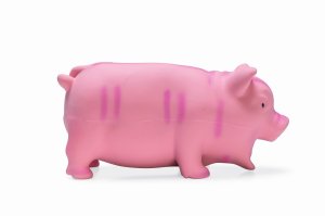Hračka ve tvaru růžového prasátka vydává při hře zábavný chrochtavý zvuk, čímž motivuje psa k dalšímu hraní.