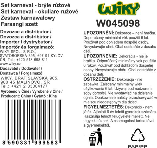 Karnevalový set - brýle plastové ve tvaru hvězd. 6 barevných provedení: růžové, modré, zelené, červené, žluté, fialové.