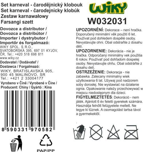 Karnevalový doplněk - čarodějnický klobouk o velikosti 44x38 cm