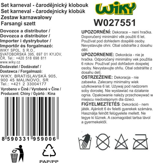 Karnevalový set čarodějnický klobouk