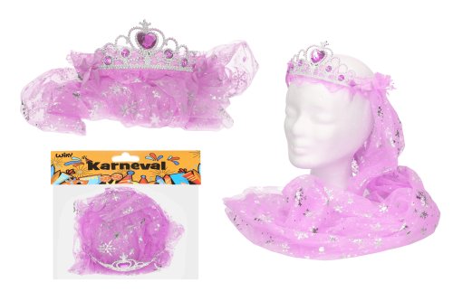 Čelenka se závojem na karneval. Modrá a růžová barva. Délka závoje je 90 cm.