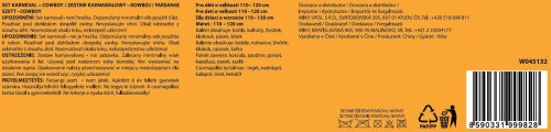 Set karneval cowboy. Pro děti o velikosti 110-120 cm. Součásti kostýmu: košile, kalhoty, živůtek, klobouk, pásek, šátek.
