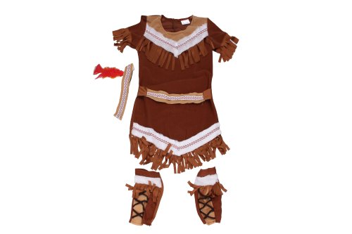 Set karneval indiánka. Pro děti o velikosti 110-120 cm. Součásti kostýmu: šaty, čelenka, pásek, návleky.