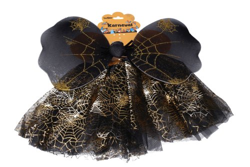 Karnevalový set motýl černý. Balení obsahuje: křídla, sukně, hůlka, čelenka. Délka sukně: 29 cm.