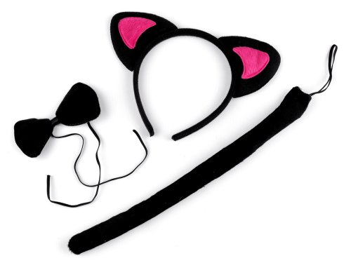 S karnevalovou sadou se vaše dítko promění v roztomilé zvířátko. Sada obsahuje čelenku s ušima, motýlka a ocásek - vše je plyšové. Ocásek a motýlek mají pružnou gumičku. Délka ocásku je cca 30 cm.