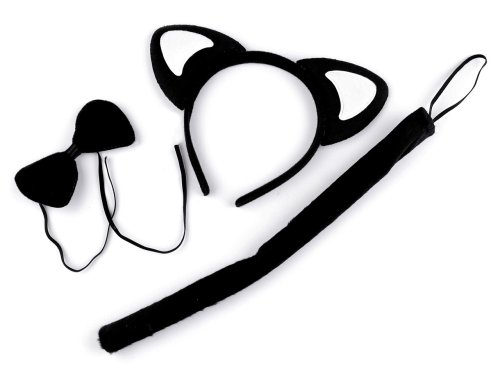 S karnevalovou sadou se vaše dítko promění v roztomilé zvířátko. Sada obsahuje čelenku s ušima, motýlka a ocásek - vše je plyšové. Ocásek a motýlek mají pružnou gumičku. Délka ocásku je cca 30 cm.