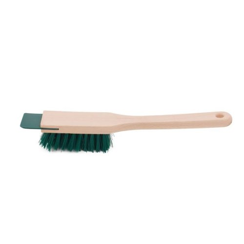 tělo z bukového dřeva rukojeť s otvorem k zavěšení vsazená plastová škrabka délka vlasu PET 30 mm