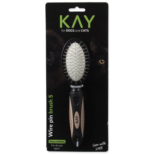 Jednostranný kartáč s ergonomicky tvarovanou plastovou rukojetí. Rukojeť má protiskluznou úpravu a její tvar usnadňuje vyčesávání.