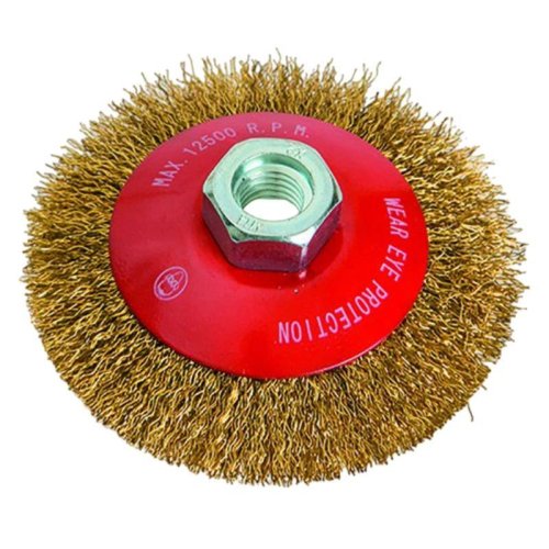 kartáč miskový s mosaznými vlnitými drátky uchycení: M14 miskový, vhodný pro nerezové materiály