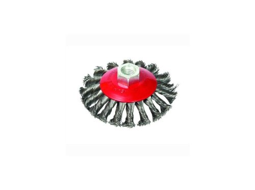 Rotační kartáč miskový provedení COPY. Patentovaný drát 0,5 mm (copy, se ani při extrémním zatížení nerozplétají). Průměr 100 mm, závit M14x2 mm, počet drátů 900, délka drátu 23 mm, max. přípustné otáčky 12500 1/min. Použití odstranění barvy, rzi, otřepů, zbytků po svařovení, strusky, zdrsňování, čištění kovoých součástí. Balení papírový box s eurootvorem. EAN 8590804012160