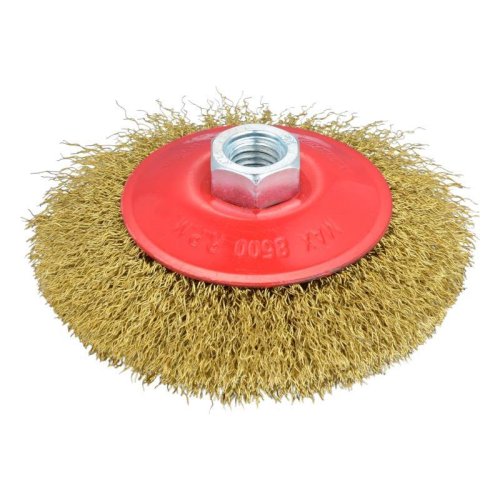 kartáč miskový - vlnitý ENPRO se závitem do úhlové brusky M14 x vhodný pro odstraňování barev, rzi, otřepů a zbytků po sváření a jiných nečistot průměr drátu: 0,3 mm (pomosazený drát)