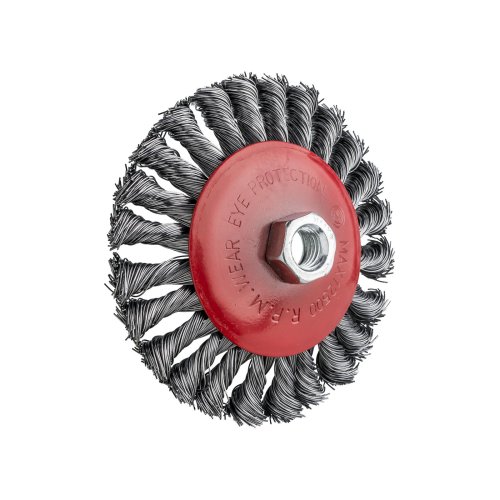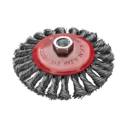 K čištění povrchů od starých nátěrů a odstraňování rzi Vysoce kvalitní kartáč na brusky s univerzálním, standardním uchycením na závit M14. Kartáč je vyroben ze silného krouceného drátu, a lze jej proto použít k odstraňování silné rzi a nečistot. Tvar kartáče umožňuje práci v těžko přístupných místech.