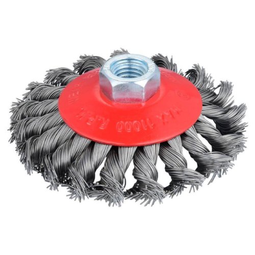 kartáč miskový - copy se závitem do úhlové brusky M14 x vhodný pro těžké kartáčovací práce, na odstraňování barev, rzi, otřepů a zbytků po sváření a jiných nečistot průměr drátu: 0,5 mm