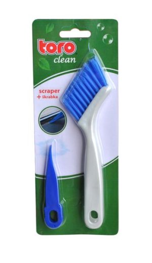 Kartáč se škrabkou, pro důkladné vyčištění spár mezi dlaždicemi, nebo dalších meziprostor. Rozměr kartáče - 19 x 4 cm, škrabka - 9 x 2 cm. Materiál - plast.