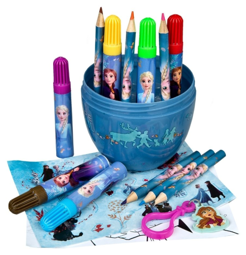 Skvělý nápad na dárek! Tato kreativní sada obsahuje: - 6x fixy - 6x pastelky - 1x arch se samolepkami (14,7 x 10,5 cm) - 1x plakát (14,7 x 10,5 cm). Uvnitř je skryté také malé překvapení - klíčenka s oblíbenou postavou!
