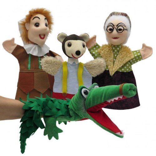 Sada 4 kusů maňásků v průhledném sáčku. Všichni pěkně pohromadě: Kasperl, Pezi, Dagobert a Grossmutti. Licence známého vídenškého loutkového divadla Urania - Kasperl a Pezi. Vyrobeno ručně v České republice.