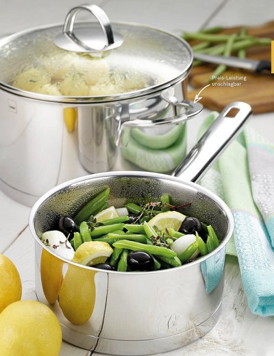 - materiál: nerezová ocel 18/10 - objem: 2,4 l- výška: 9,5 cm- průměr: 20 cm- síla stěny 0,8 mm- skleněná poklice- nerezové rukojetiLuxusní hrnce a pánve německé značky KELA, řady Cailin se zárukou 5 let jsou vyrobeny z leštěné nerezové oceli 18/10, mají vícevrstvé termoakumulační dno, sílu stěny 0,8 mm, skleněné poklice a nerezové rukojeti. Jsou vhodné pro všechny typy sporáků včetně indukčních.