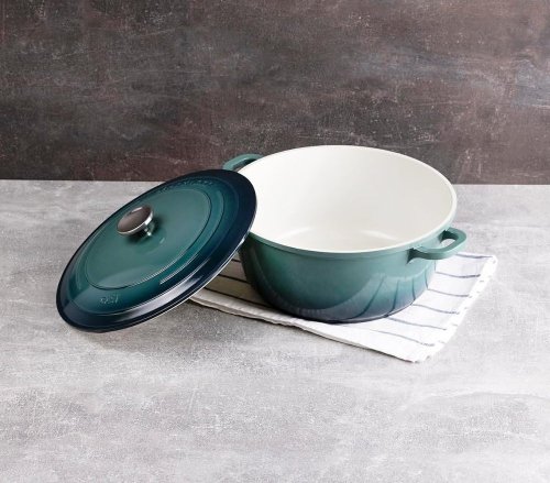 • 20cm / 2,2L kastrol s poklicí.• Vyrobeno z litého hliníku, materiálu, který velmi dobře udržuje teplo.• Nepřilnavý povrch Cera+ krémové barvy. • Exteriér v odstínech zelené. • Speciální indukční základna vykládaná plástvem, pro všechny typy ohňů. • Nerezový knoflík navržený tak, aby vydržel.Excalibur přináší do vaší kuchyně efektivní a sofistikované nádobí s nádechem barev. Kastrol o průměru 20 cm má kapacitu 2,2 litru a je vyroben ze strategicky tvarovaného litého hliníku pro nejlepší udržení a distribuci tepla, spolu s ekologickým keramickým nepřilnavým povrchem pro šetrné vaření a plnou chuť. Kolekce připomínající staromódní kuchyni s přechodovým zeleným designem, víkem s nerezovým knoflíkem a úchyty, které usnadňují pohyb. Kastrol jsou vysoce trvanlivé a odolné proti korozi, stejně jako mají indukční základnu, která účinně přenáší teplo ze základny na okraje pro vaření na jakékoli varné desce, včetně indukce. Pro prodloužení životnosti pánve se doporučuje ruční mytí bez toxických látek, jako je PFOA.