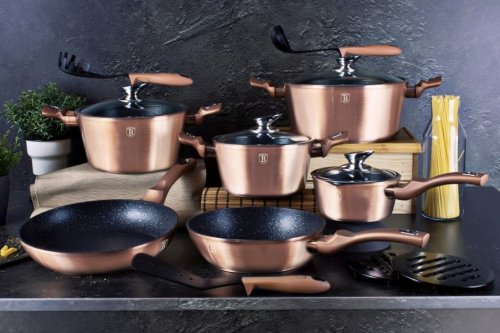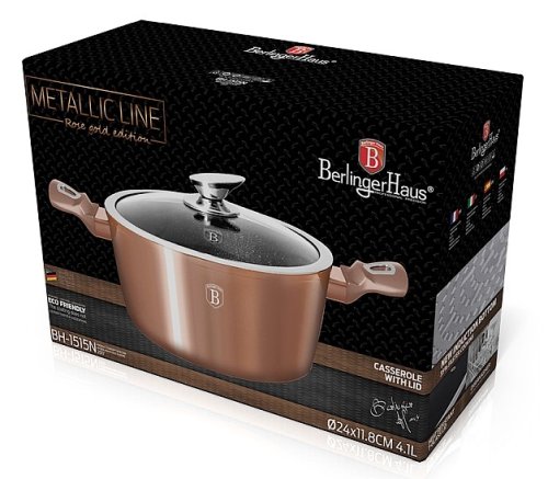 Kastrol s mramorovým povrchem a poklicí 24 cm Rosegold Metallic Line BH-1515