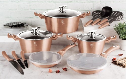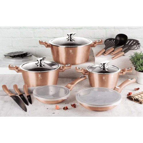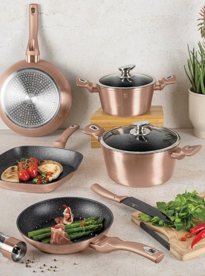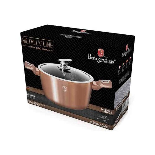 - materiál: kovaný hliník s mramorovým povrchem- barva: Rose Gold, metalická- průměr: 28 cm- objem: 6,1 litru- 3 vrstvý nepřilnavý povrch s mramorovým designem- ergonomické měkčené rukojeti- TURBO indukční …