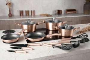 - materiál: kovaný hliník s mramorovým povrchem- barva: Rose Gold, metalická- průměr: 30 cm- objem: 8 litrů- 3 vrstvý nepřilnavý povrch s mramorovým designem- ergonomické měkčené rukojeti- TURBO indukční …