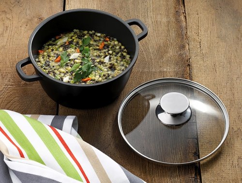 - materiál: tlakově litý hliník- vnitřní keramický povrch GREBLON C3+- průměr: 24 cm- výška: 10,5 cm- tloušťka stěny: 5 mm- objem: 3,2 l- skleněná poklice- vhodná pro všechny typy ohřevů včetně indukce- …