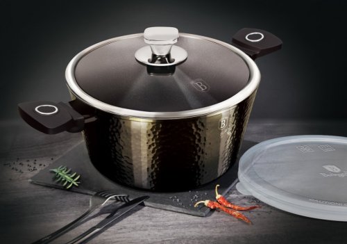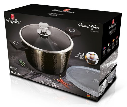 Středně velký kastrol s titanovým povrchem v unikátním designu Primal Gloss Collection. Součástí hrnců Primal Gloss jsou 2 poklice. Klasická skleněná poklička a navíc silikonové víko pro komfortnější užívání. Vnější tepaný vzhled kastrolu jistě zaujme každého hned na první pohled. Tepaný povrch je silnější a odolnější vůči poškození či deformaci, navíc vypadá opravdu výborně. Vnitřní vrstva je pokryta třívrstvým titanovým povrchem, který je charakteristický svou dokonalou nepřilnavostí. Připravované pokrmy se tak nepřipalují a díky tomu se kastrol velmi snadno čistí. Titanový povrch, stejně jako ostatní použité materiály, neobsahují žádné škodlivé látky, vaření je tak zcela zdravé a hygienické. Zesílené Turbo indukční dno z nerezové oceli je kompatibilní se všemi druhy sporáků a spolehlivě funguje také na indukci. Nespornou výhodou jsou také tepelně odolné rukojeti, které se při vaření nezahřívájí a zůstávájí stále chladné. Kastrol Primal Gloss je vhodný pro každodenní vaření, dušení i smažení, perfektně bude vypadat i při servírování hotových jídel přímo na váš stůl.