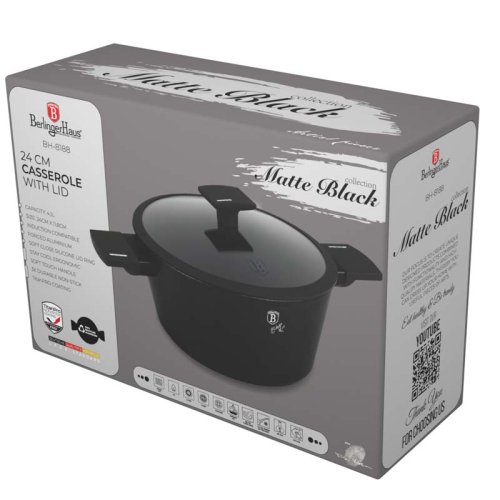 Tento hrnec je vyroben z kovaného hliníku s 3 vrstvým nepřilnavým povrchem TitanPro, který zajišťuje vysokou kvalitu a odolnost. Hrnec má rozměry 24x11 cm a objem 4,1 litru. Matná černá barva a minimalistický styl dodávají hrnci moderní vzhled. Ergonomická rukojeť Soft Touch Stay Cool zajišťuje pohodlné a bezpečné používání. Cedící poklice je vyrobena z tvrzeného skla s tepelně odolným silikonovým systémem Soft Close.