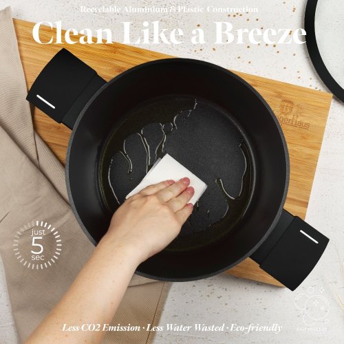- Ekologicky šetrné: Bez PFOA, olova a kadmia.