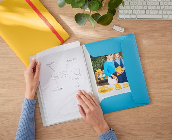 • Značková řada Leitz Cosy vám umožní cítit se jako doma, ať už vás váš pracovní den zavede kamkoli. Díky minimalistickému designu a lákavé matné povrchové úpravě přidáte do svého pracovního prostoru styl a barvu. Katalogová kniha Leitz Cosy A4 je ideální pro prezentaci nebo ukládání dokumentů, dokumenty chrání a umožňuje jejich snadné prohlížení. Praktické integrované 3chlopňové desky vzadu rozšiřují celkovou kapacitu. Tento prémiový organizér dokumentů je perfektním doplňkem do vašeho domova nebo kanceláře, usnadní a zpříjemní vám práci s dokumenty.