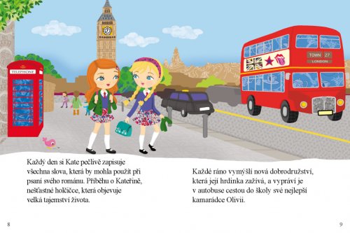 Kate žije v Londýně, nedaleko Temže. Vedle starší sestry, kterou všichni obdivují, a mladší, kterou všichni rozmazlují, se cítí trochu odstrčená. Naštěstí má vlastní zálibu. Miluje čtení a rozhodla se, že až bude velká, stane se spisovatelkou. Každé ráno vymýšlí nová dobrodružství a vypráví je své nejlepší kamarádce Olivii. Jenže když se je večer pokouší sepsat, nedokáže dát dohromady větu. Jednoho dne však objeví na bleším trhu tajemný deník potažený purpurovým semišem.