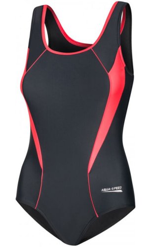 Dámské jednodílné sportovní plavky Aqua-Speed Kate s vertikálním lemováním, stylovými barevnými panely, střední nohavičkou, širokými ramínky a zpola krytými zády jsou vyrobené z tkaniny nové generace Newport, která nabízí velkou odolnost vůči chlóru a UV záření (UPF50+), zpevňuje svalstvo, zachovává si tvar, je rychlosnoucí a je příjemná na těle. Dámské sportovní plavky Aqua-Speed Kate mají ideální materiál pro časté kondiční plavání, i pro všechny vodní sporty.