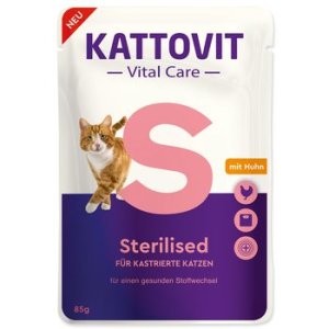 Lahodné mokré krmivo s kuřecím pro kastrované nebo sterilizované kočky, podporuje normální funkci močových cest. Kastrované kočky mají obvykle poněkud jiné požadavky na stravování. Často mívají větší nadváhu nebo se více potýkají s problémy s močovými cestami. Kattovit Vital Care Sterilised Pouches Chicken se zaměřuje přesně na tyto potřeby. Obsahuje například DL-methionin, který okyseluje moč a přispívá k normální funkci močových cest.