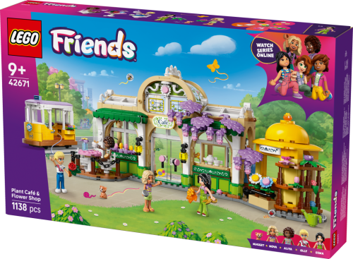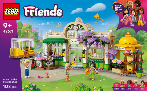 Popusťte uzdu dětské fantazii se stavebnicí LEGO® Friends Kavárna plná rostlin a květinářství pro holky a kluky, ve které najdete také model tramvaje Tato propracovaná stavebnice LEGO® obsahuje hned několik míst, které inspirují děti k vymýšlení příběhů o přátelství, včetně květinářství, kavárny s venkovním posezením, kuchyňky a tramvaje Tato stavebnice kavárny obsahuje minipanenku Aliyi, Esmy, Ollyho a Novy a figurku kočky Nugget a spoustu doplňků k jídlu, rostlin a květin Objevte řadu doplňků včetně kávovaru, lednice, trouby, kohoutku, stolu, pečiva, nápojů, stoliček, kytic, rostlin v květináčích, nůžek, konve a dalších