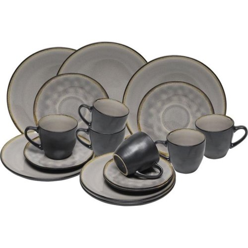 Kávová souprava Kos reaktivní glazura šedá 18dílná 6 šálků s podšálky a 6 dortových talířů.6 šálků na kávu (kapacita 175 ml) 6 podšálků (14,5 cm) 6 dortových talířů (19 cm)
