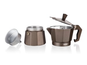 Kávovar CAMPI na 6 šálků je tradiční kávovar pro domácí přípravu chutné silné kávy. Je vhodný pro použití na plynových, elektrických a sklokeramických deskách. Hliníkové tělo kávovaru již po několika šálcích získá patinu, která je pro správnou chuť kávy nepostradatelná. Kávovar je opatřen bezpečnostním ventilem. Kávovar není vhodný pro mytí v myčce.