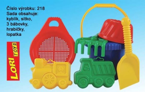 Hračky na písek využije na dovolené u moře, na dětském hřišti nebo na zahradě celá rodina. Sada obsahuje kbelík, sítko, lopatku, hrabičky a 3 bábovičky. Rozměry balení 20 x 28 x 12 cm. Vhodné pro děti od 12 měsíců.