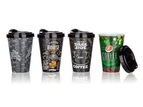 Plastový kelímek COFFEE je k dispozici v několika dekorech. Je určen k opakovanému použití, je vhodný jak na studené, tak na teplé nápoje.