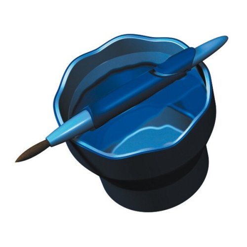 Kelímek s praktickým skládacím mechanismem má speciálně tvarovaný okraj pro pohodlné odkládání štětce.