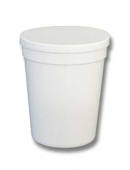 Lékárenský plastový kelímek s víčkem, o objemu 200 ml, vyrobený ze zdravotně nezávadných vstřikovaných plastů, určený zejména pro farmaceutický průmysl.