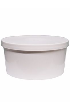 Lékárenský plastový kelímek s víčkem, o objemu 500 ml, vyrobený ze zdravotně nezávadných vstřikovaných plastů, určený zejména pro farmaceutický průmysl.